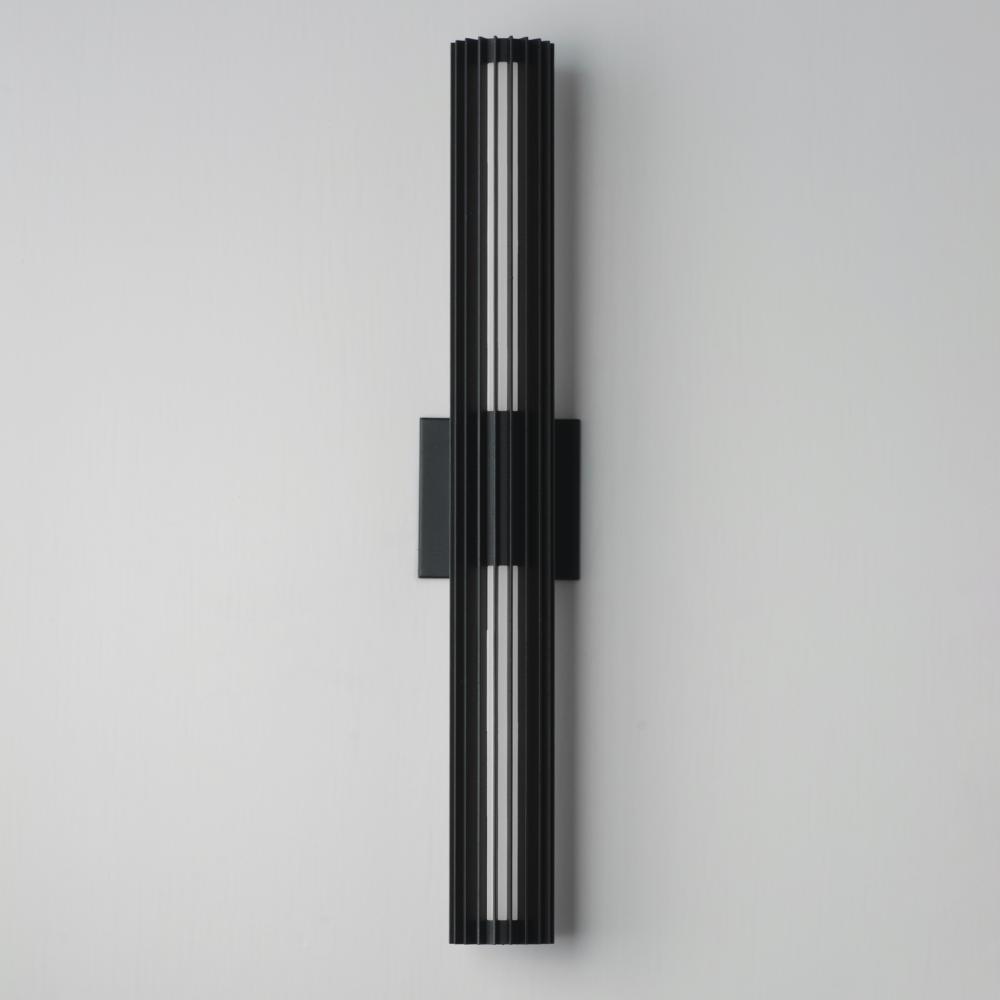Vertical aluminum strands surround an acrylic LED tube that shines omnidirectional light filtered by the frame. The thin profile of the overall column extends less than 4" offering ADA compliant applications. Available in a variety of sconce sizes, the