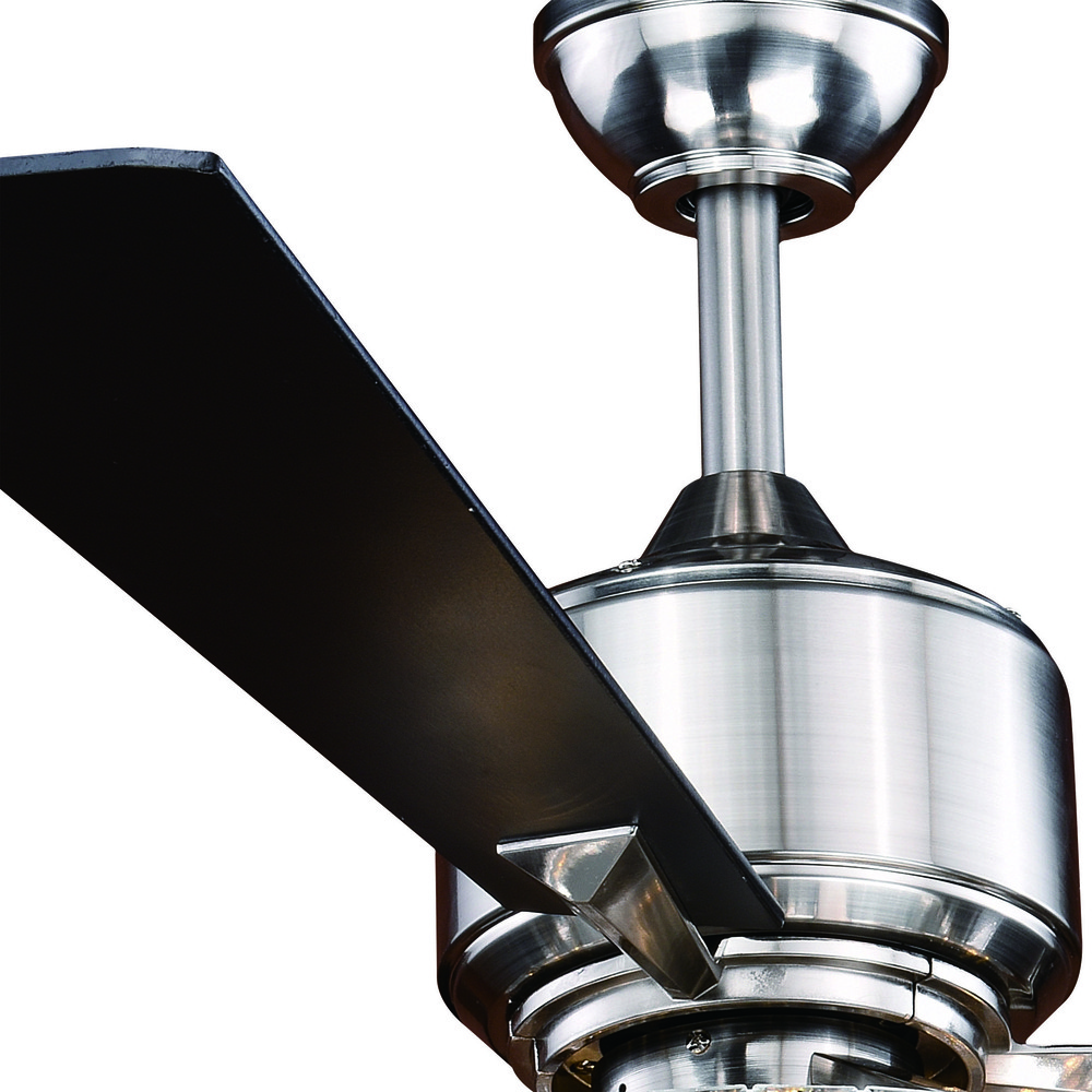 Contemporary glitz is summed up in the Clara fan. A brushed nickel finish is strikingly joined by a dramatic crystal light kit. The ample LED light source creates an unexpected glow of beauty with functional cooling in any modern room of the house. This fan is compatible with sloped ceilings and includes a 6 inch down rod (longer down rods sold separately). Remote control included for added convenience.