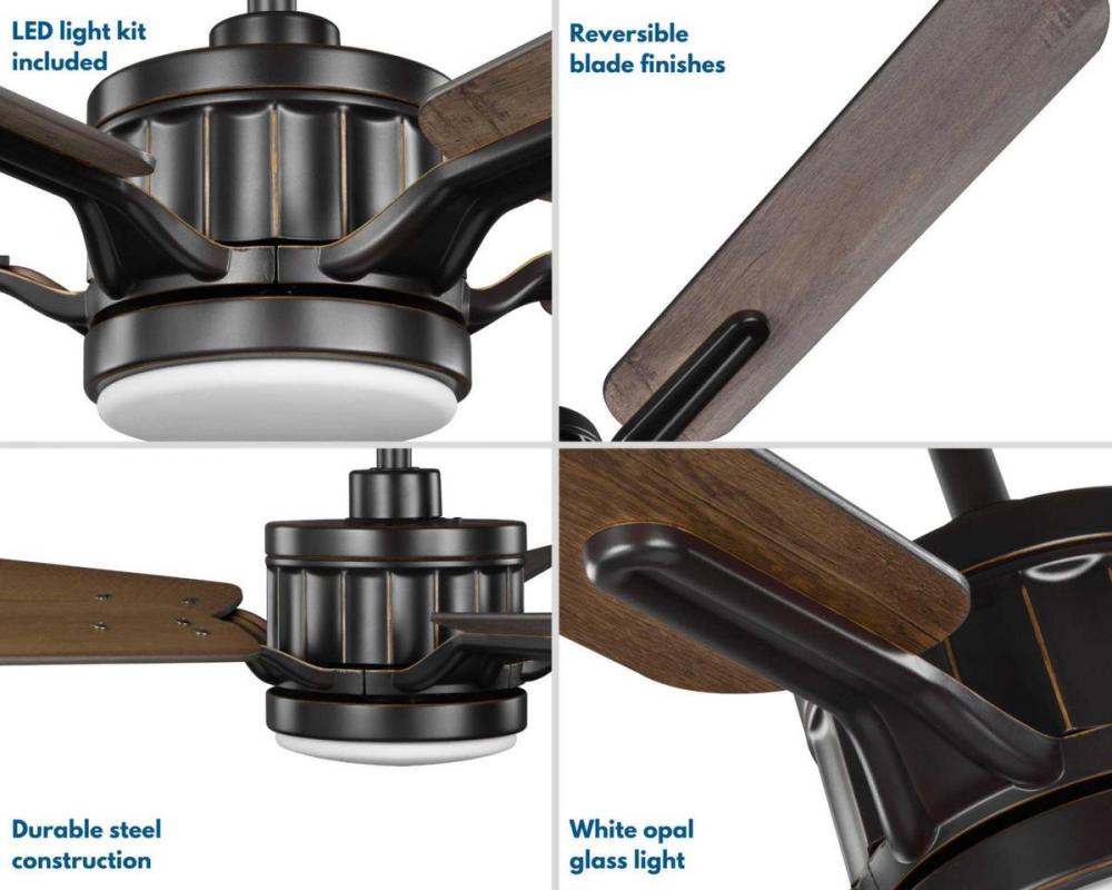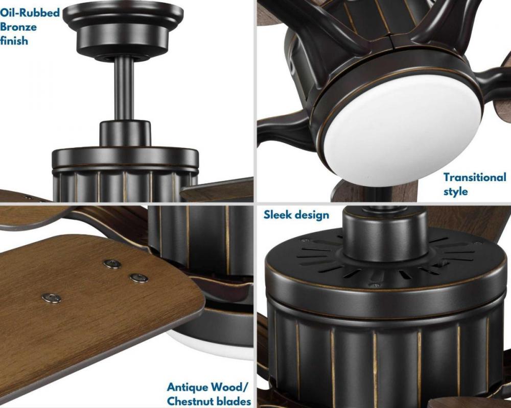 Application: Gracefully blend old and new with the Claret Collection 5-Blade Reversible Antique Wood/Chestnut 54-Inch AC motor LED Transitional Ceiling Fan ideal for any living room.;Styles: Perfect for transitional style settings.;Finish: The canopy and f