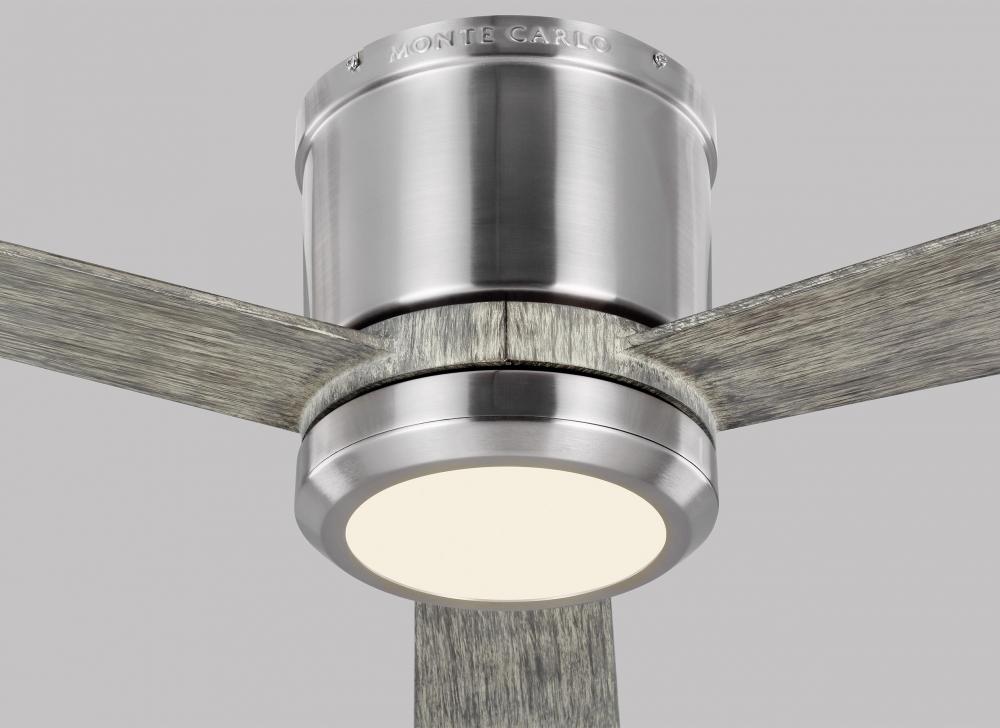 The Sean Lavin Clarity 52 LED in Brushed Steel w LGWO Blades features a 153.0 X 18.0 3 speed motor with a Twelve degree blade pitch. The Clarity 52 ceiling fan has a sleek, three-blade design that hugs the ceiling and is offered in four finish combinations to suite virtually any decor. The fans blade sweep is 52. A two-in-one remote control (combo hand-held and wall mount) with reverse and dimmer functionality is included.