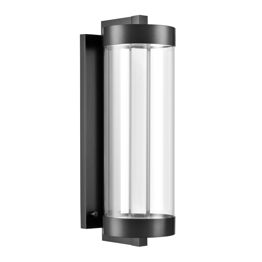 Modern 24" 4-Light Exterior Cylindrical Glass Incased Crystal Wall Sconce. Crystal Clear Fire Polished Acrylic Cylindrical Crystal. Refined metal details with our marine grade sleek satin brushed black finish. Equipped with a 3 way switch to showcase the crystal or glass on only or both on together, with our powerful LED technology which is easily replaceable and 5CCT 2700K, 3000K, 3500K, 4000K, 5000K.