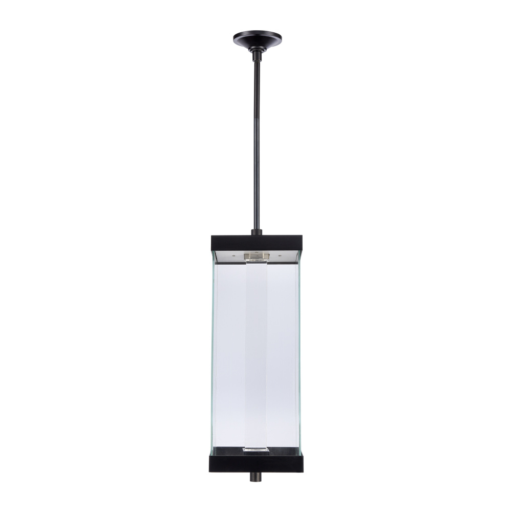 Modern 24" 2-Light Exterior Square Glass Incased Crystal Pendant Light. Crystal Clear Fire Polished Acrylic Square Crystal. Refined metal details with our marine grade sleek satin brushed black finish. Equipped with a 3 way switch to showcase the crystal or glass on only or both on together, with our powerful LED technology which is easily replaceable and 5CCT 2700K, 3000K, 3500K, 4000K, 5000K.