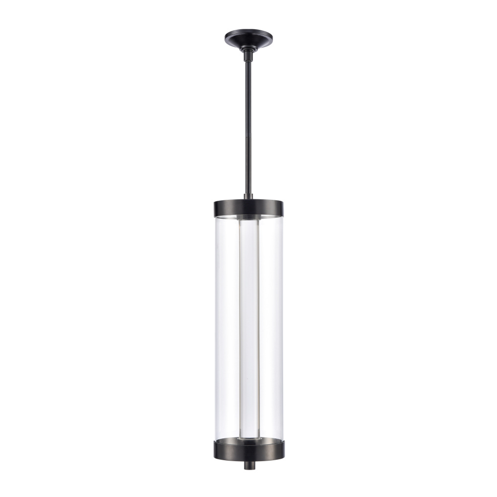 Modern 35" 2-Light Exterior Cylindrical Glass Incased Crystal Pendant Light. Crystal Clear Fire Polished Acrylic Cylindrical Crystal. Refined metal details with our marine grade sleek satin brushed black finish. Equipped with a 3 way switch to showcase the crystal or glass on only or both on together, with our powerful LED technology which is easily replaceable and 5CCT 2700K, 3000K, 3500K, 4000K, 5000K.