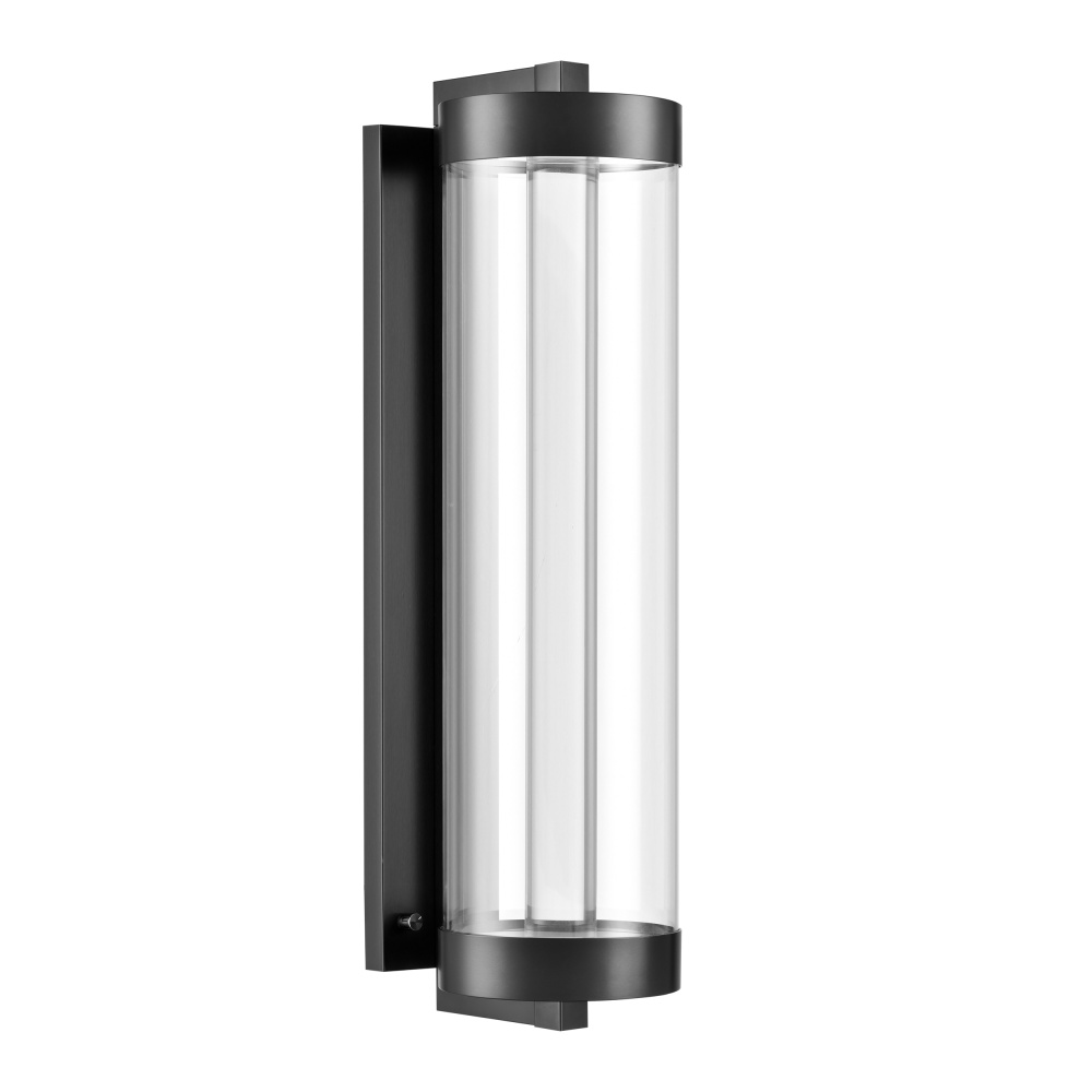 Modern 35" 4-Light Exterior Cylindrical Glass Incased Crystal Wall Sconce. Crystal Clear Fire Polished Acrylic Cylindrical Crystal. Refined metal details with our marine grade sleek satin brushed black finish. Equipped with a 3 way switch to showcase the crystal or glass on only or both on together, with our powerful LED technology which is easily replaceable and 5CCT 2700K, 3000K, 3500K, 4000K, 5000K.