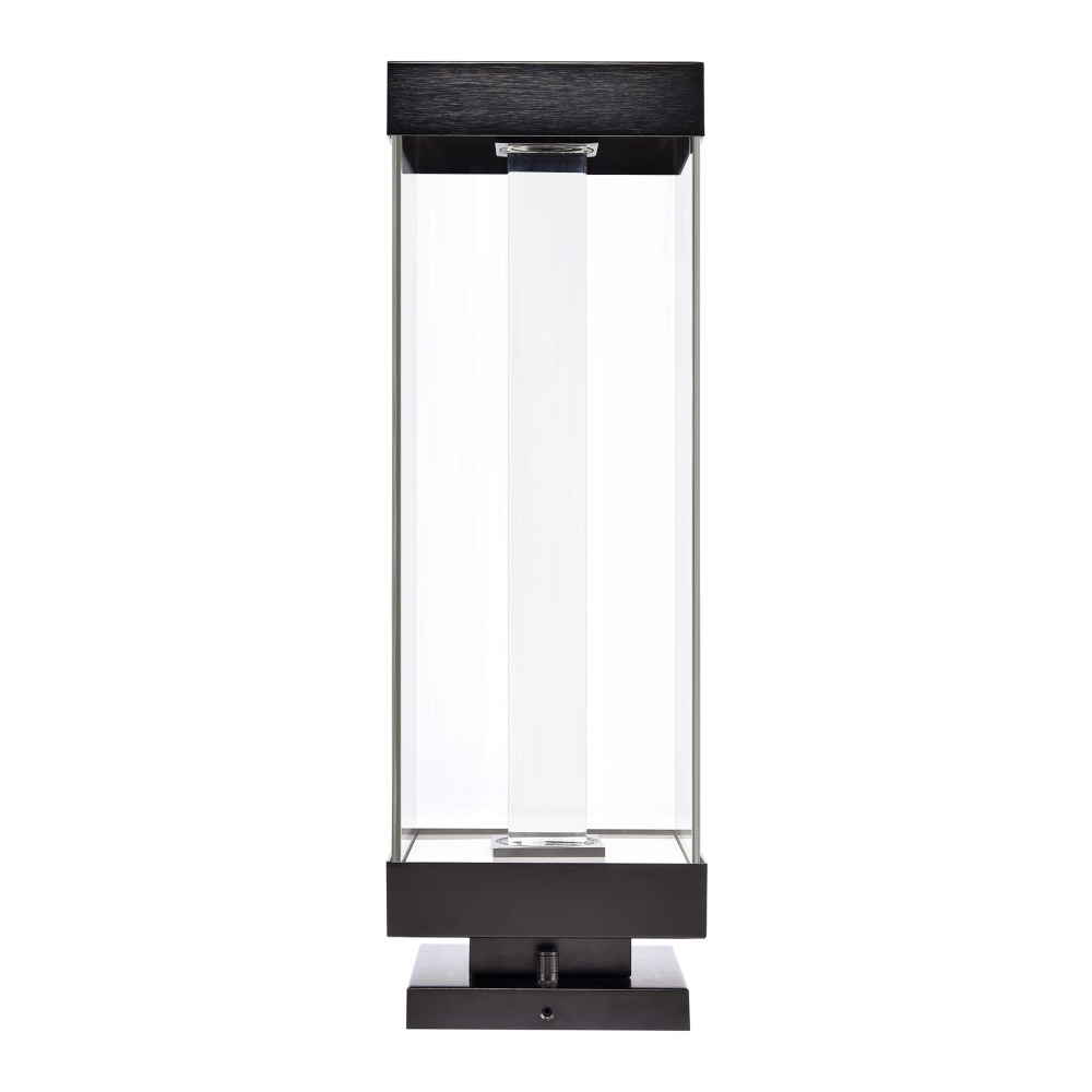 Modern 35" 2-Light Exterior Glass Incased Crystal Bollard or Post Mount. Crystal Clear Fire Polished Acrylic Square Crystal. Refined metal details with our marine grade sleek satin brushed black finish. Equipped with a 3 way switch to showcase the crystal or glass on only or both on together, with our powerful LED technology which is easily replaceable and 5CCT 2700K, 3000K, 3500K, 4000K, 5000K.