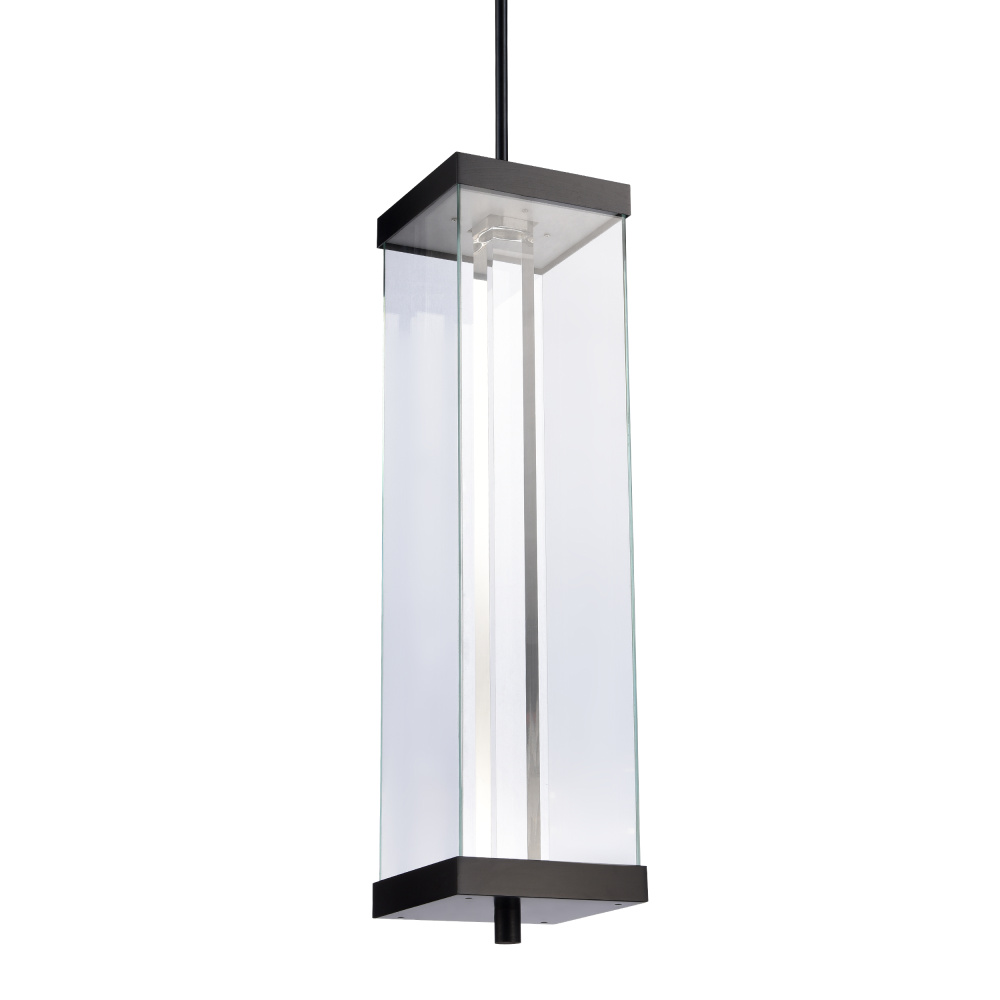 Modern 35" 2-Light Exterior Square Glass Incased Crystal Pendant Light. Crystal Clear Fire Polished Acrylic Square Crystal. Refined metal details with our marine grade sleek satin brushed black finish. Equipped with a 3 way switch to showcase the crystal or glass on only or both on together, with our powerful LED technology which is easily replaceable and 5CCT 2700K, 3000K, 3500K, 4000K, 5000K.