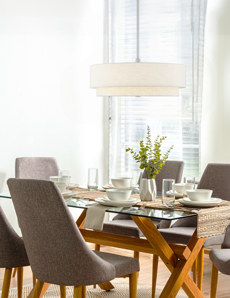 Can be hung as a semi-flush or drum pendant
