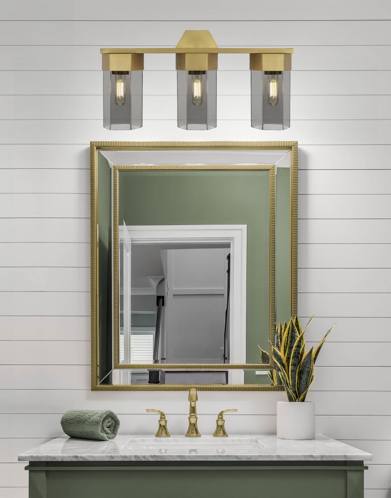 Claverack - 3 Light - 22 inch - Brushed Brass - Light Smoke Shade - Bath Vanity Light