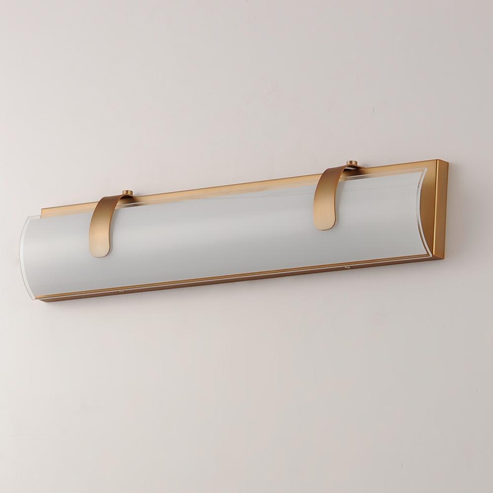 Designed to fit the essentials, this bath vanity series will always come in clutch. Dedicated LED illuminates the backside of a low-profile curved opal White glass sweeping upwards to a metal latch conveniently finished in your choice of Polished Chrome, G