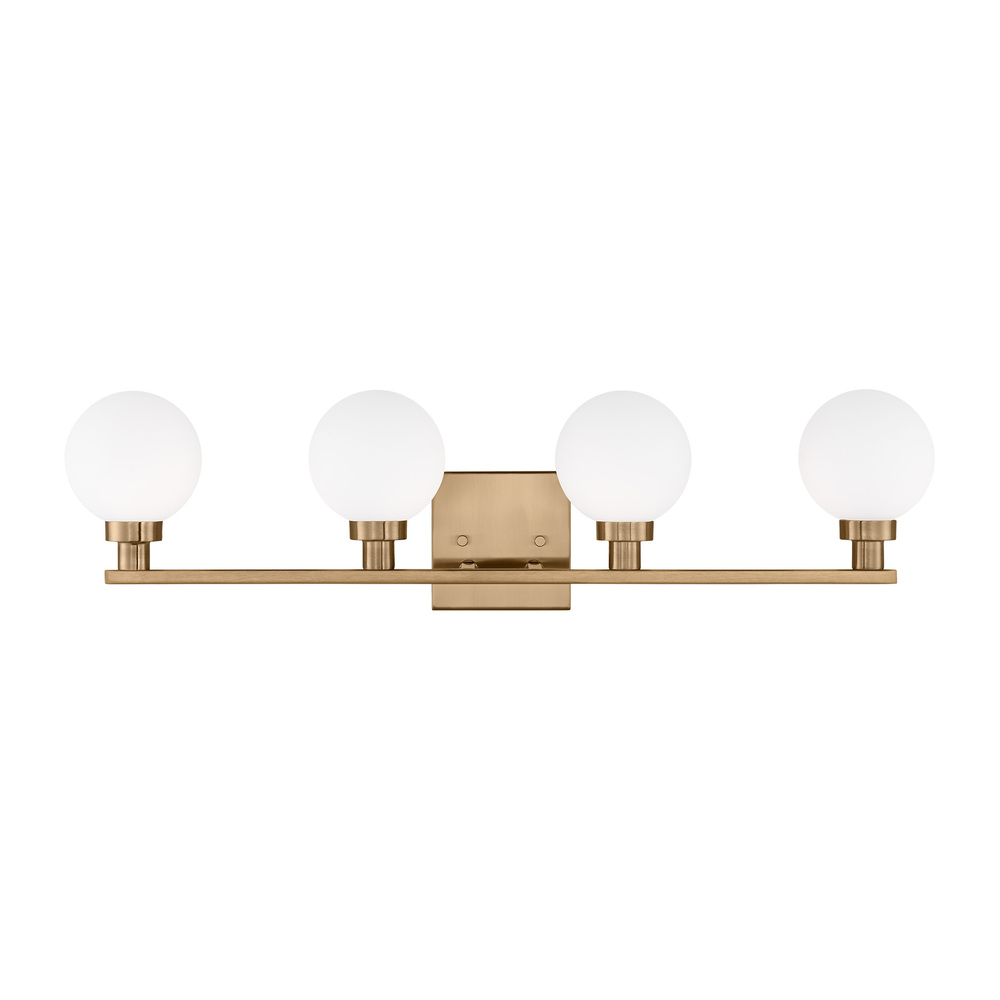 The Clybourn four light vanity fixture in Satin Brass is an industrial yet minimalist design, making this fixture perfect for an eclectic living room or over a modern dining room table. Milk Glass gives the Clybourn series a more current look.