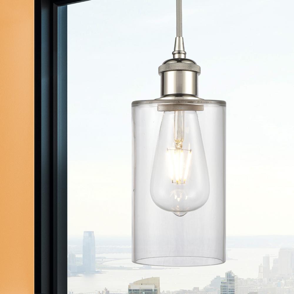 Clymer - 1 Light - 4 inch - Polished Nickel - Clear Shade - Cord hung - Mini Pendant