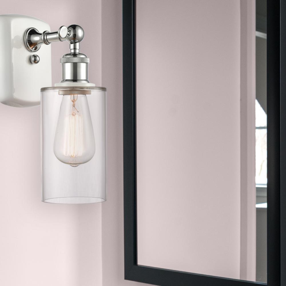 White & Clear heavy glass cylinders and a large selection of frame finishes allow the Clymer series to match any decor.