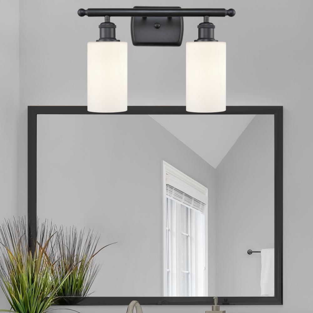 Clymer - 2 Light - 14 inch - Matte Black - Matte White Shade - Bath Vanity Light