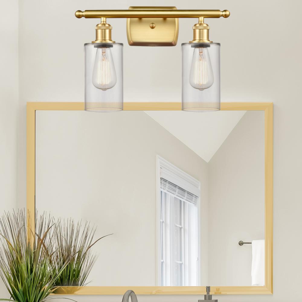 Clymer - 2 Light - 14 inch - Satin Gold - Clear Shade - Bath Vanity Light