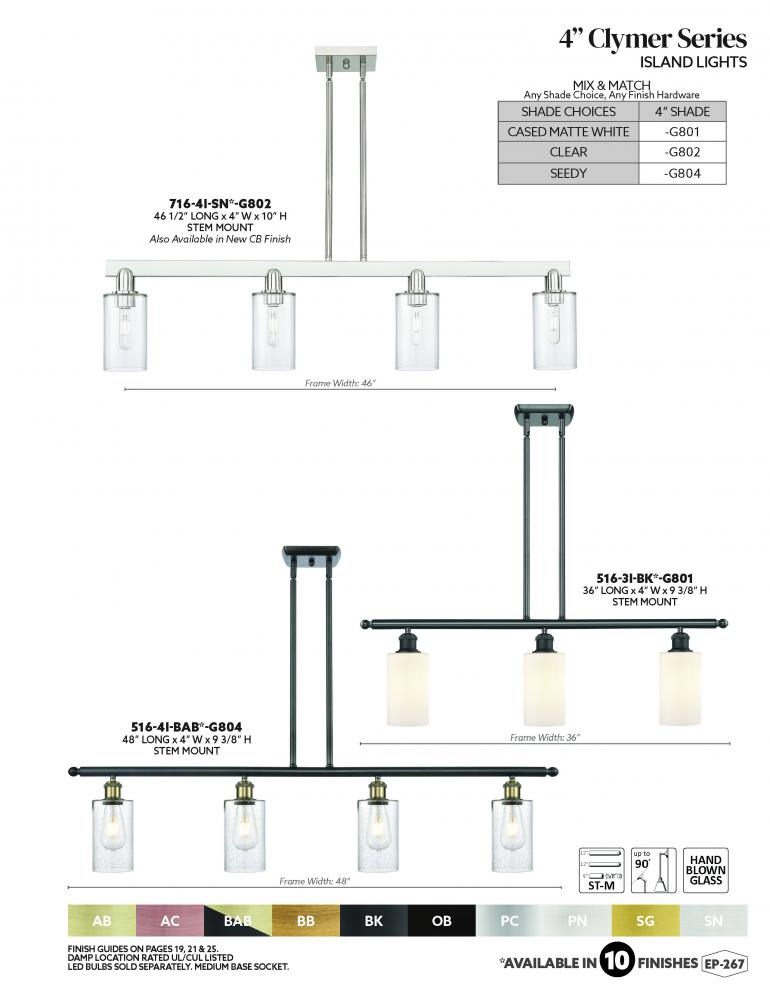 Clymer - 4 Light - 47 inch - Antique Brass - Stem hung - Island Light