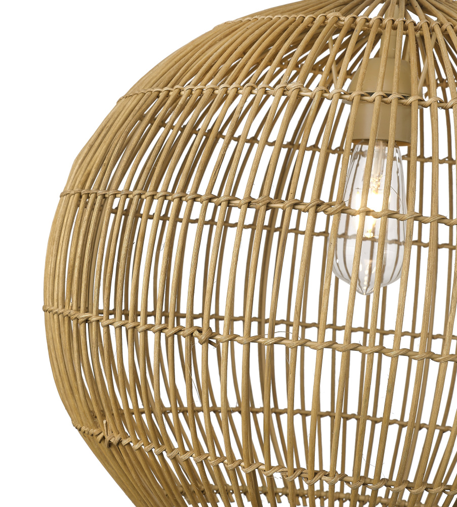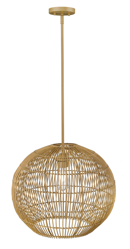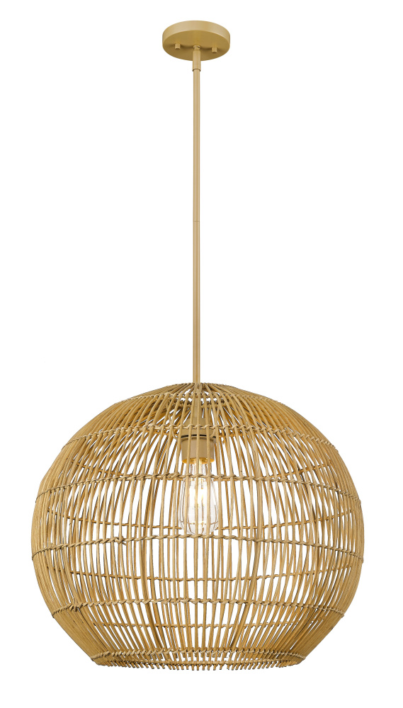 Coastal 19.25 in. Camel Rattan 1-Light Pendant