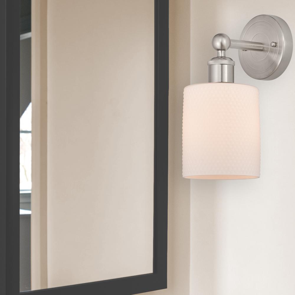 Cobbleskill - 1 Light - 5 inch - Brushed Satin Nickel - Matte White Shade - Sconce