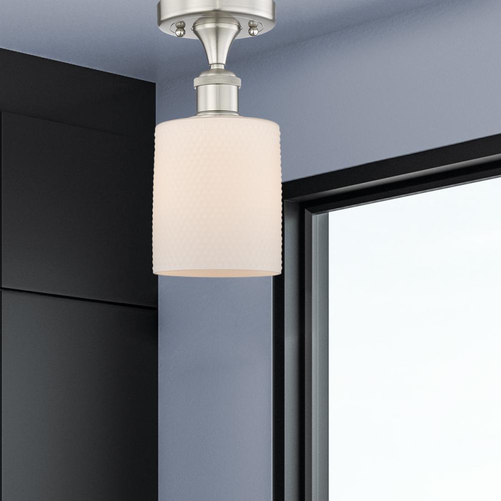 Cobbleskill - 1 Light - 5 inch - Brushed Satin Nickel - Matte White Shade - Semi-Flush Mount