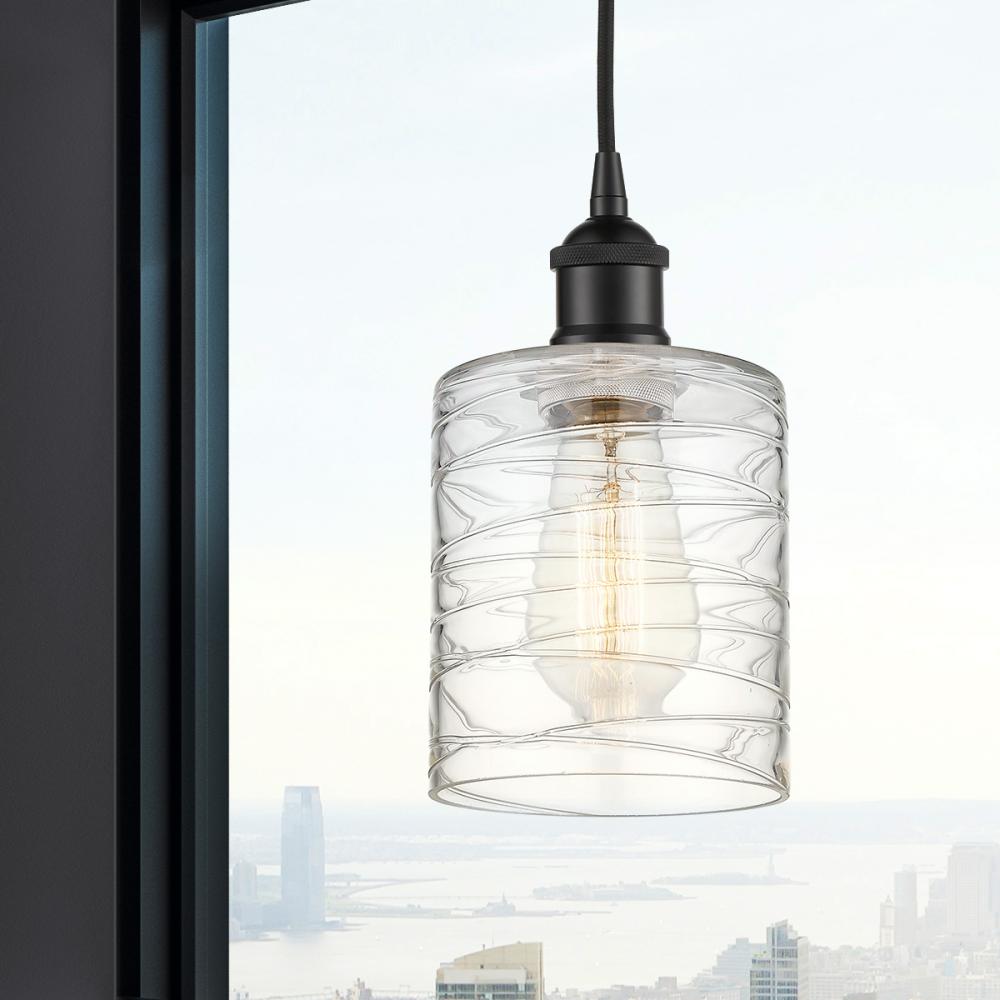 Cobbleskill - 1 Light - 5 inch - Matte Black - Deco Swirl Shade - Cord hung - Mini Pendant