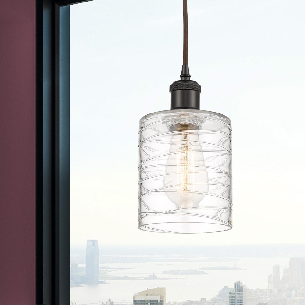 Cobbleskill - 1 Light - 5 inch - Oil Rubbed Bronze - Deco Swirl Shade - Cord hung - Mini Pendant