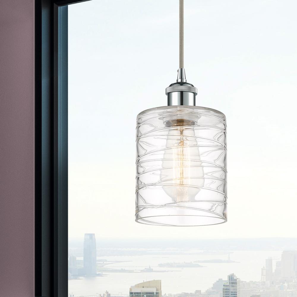 Cobbleskill - 1 Light - 5 inch - Polished Chrome - Deco Swirl Shade - Cord hung - Mini Pendant