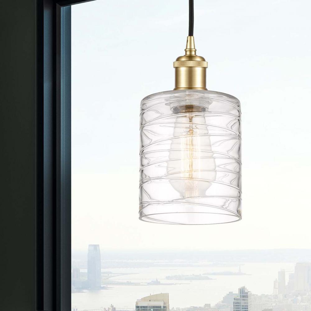Cobbleskill - 1 Light - 5 inch - Satin Gold - Deco Swirl Shade - Cord hung - Mini Pendant
