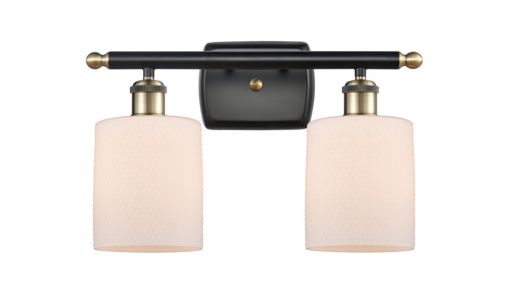Cobbleskill - 2 Light - 15 inch - Black Antique Brass - Matte White Shade - Bath Vanity Light