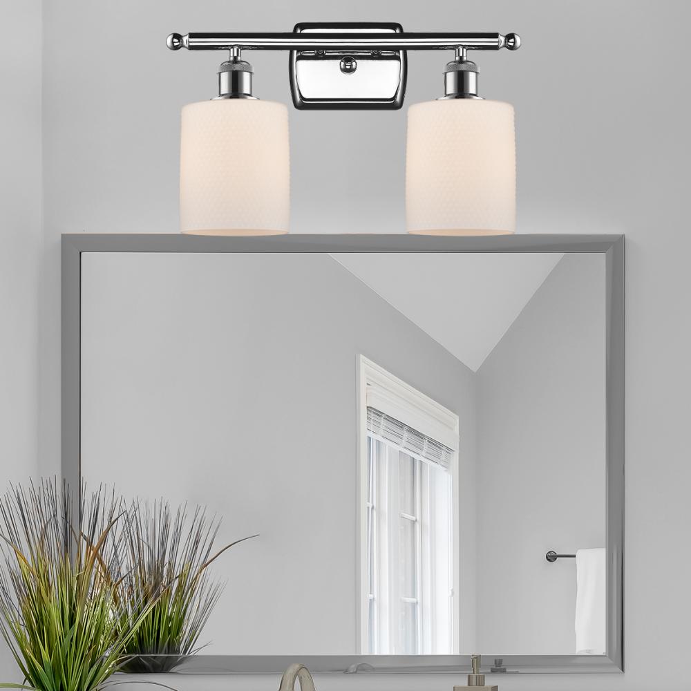 Cobbleskill - 2 Light - 15 inch - Polished Chrome - Matte White Shade - Bath Vanity Light