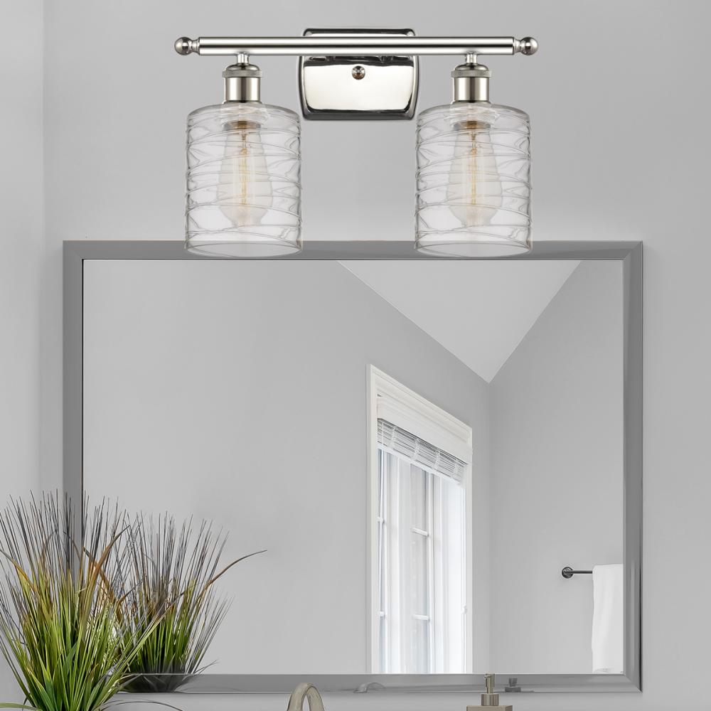Cobbleskill - 2 Light - 15 inch - Polished Nickel - Deco Swirl Shade - Bath Vanity Light