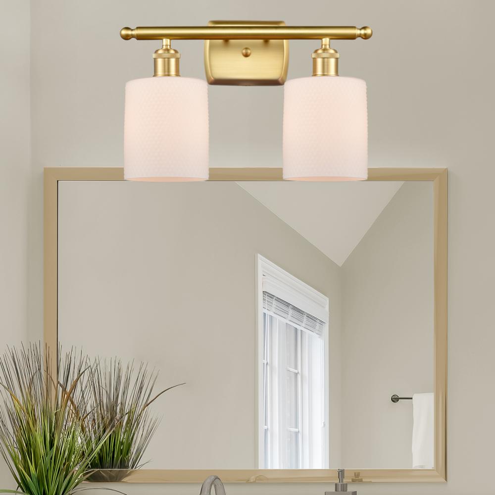 Cobbleskill - 2 Light - 15 inch - Satin Gold - Matte White Shade - Bath Vanity Light