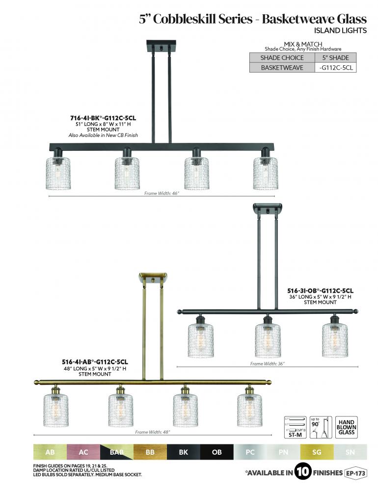 Cobbleskill - 4 Light - 48 inch - Matte Black - Stem hung - Island Light