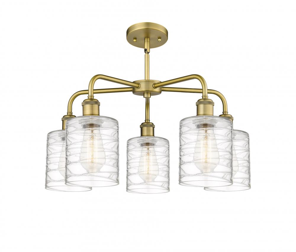 Cobbleskill - 5 Light - 23 inch - Brushed Brass - Deco Swirl Shade - Chandelier