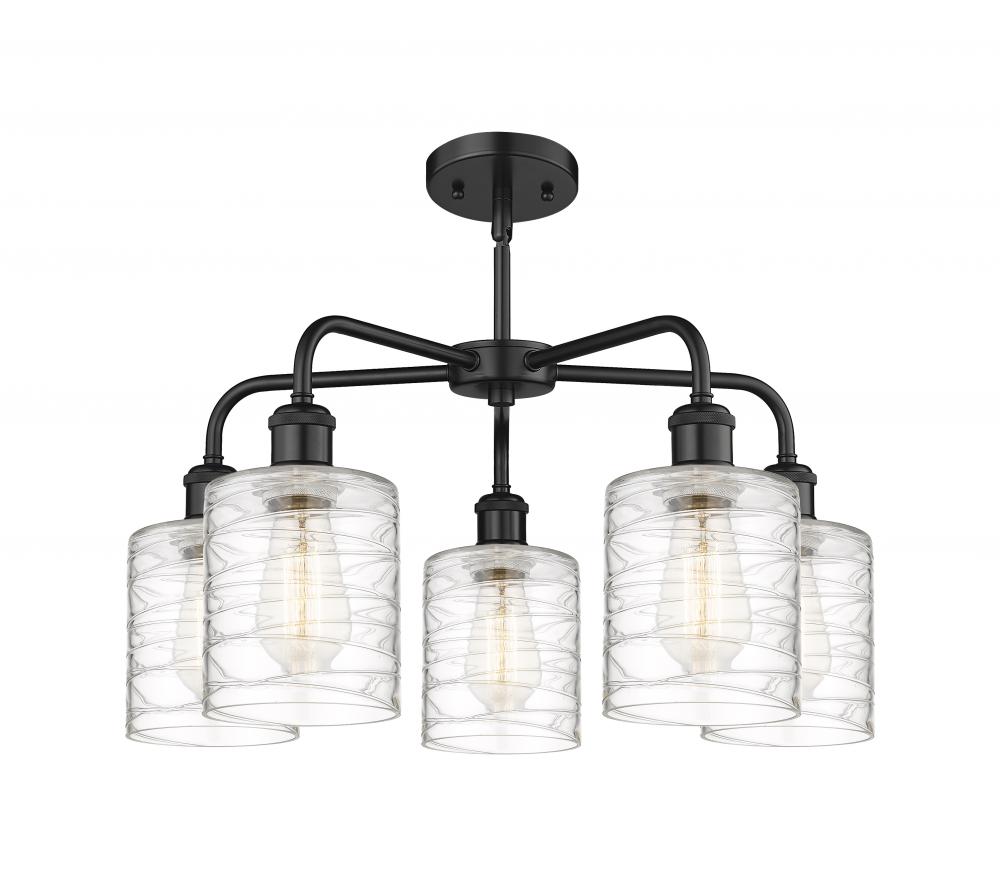 Cobbleskill - 5 Light - 23 inch - Matte Black - Deco Swirl Shade - Chandelier