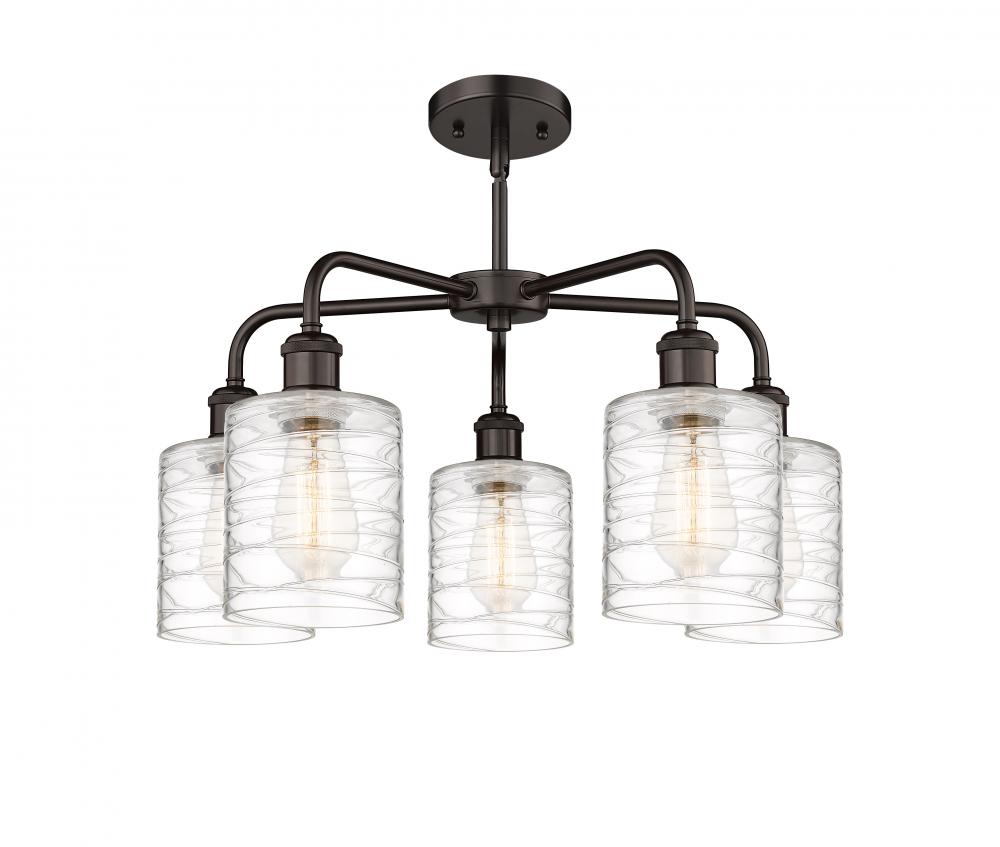 Cobbleskill - 5 Light - 23 inch - Oil Rubbed Bronze - Deco Swirl Shade - Chandelier