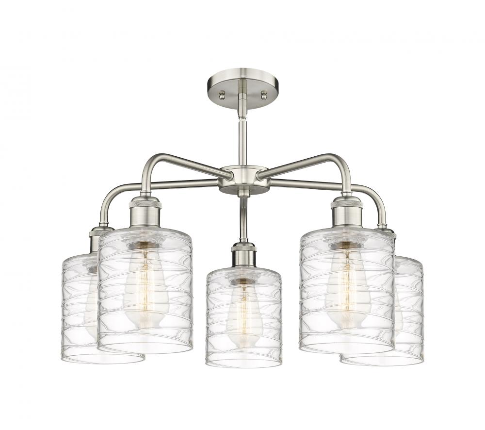 Cobbleskill - 5 Light - 23 inch - Satin Nickel - Deco Swirl Shade - Chandelier