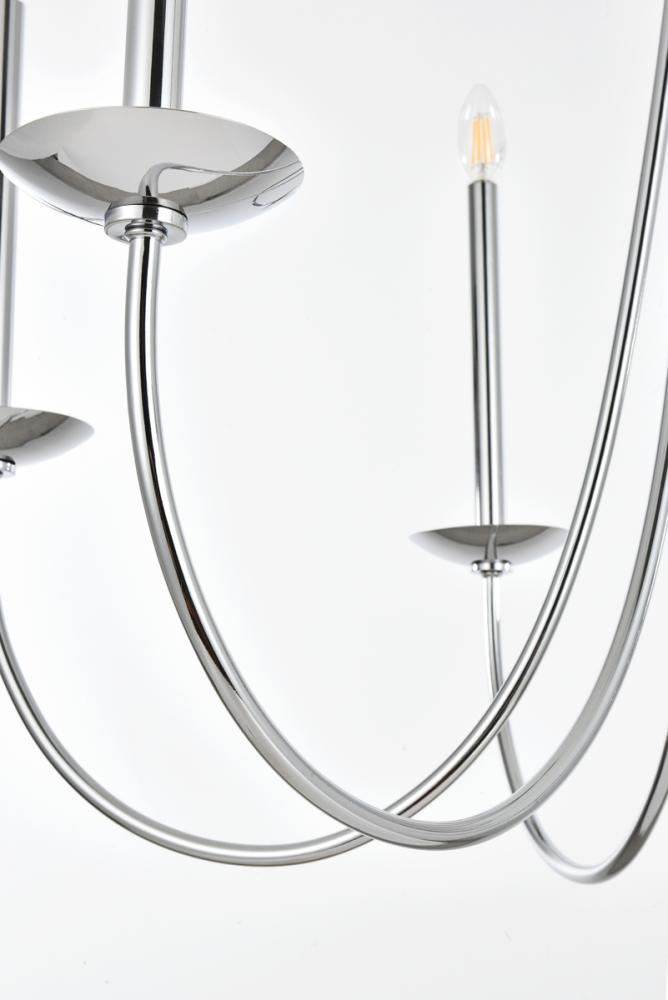 This chandelier stands out with its distinctive and eye-catching design. The smooth, soft thin metal scooped tubular arms gracefully culminate io the base of the candlestick, creating a mesmerizing visual effect that captivates anyone who lays eyes on it.