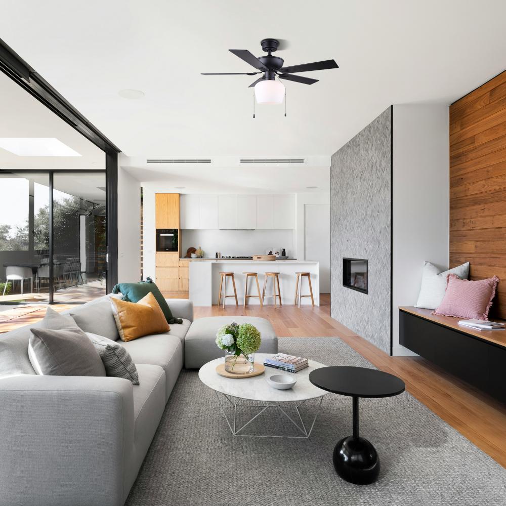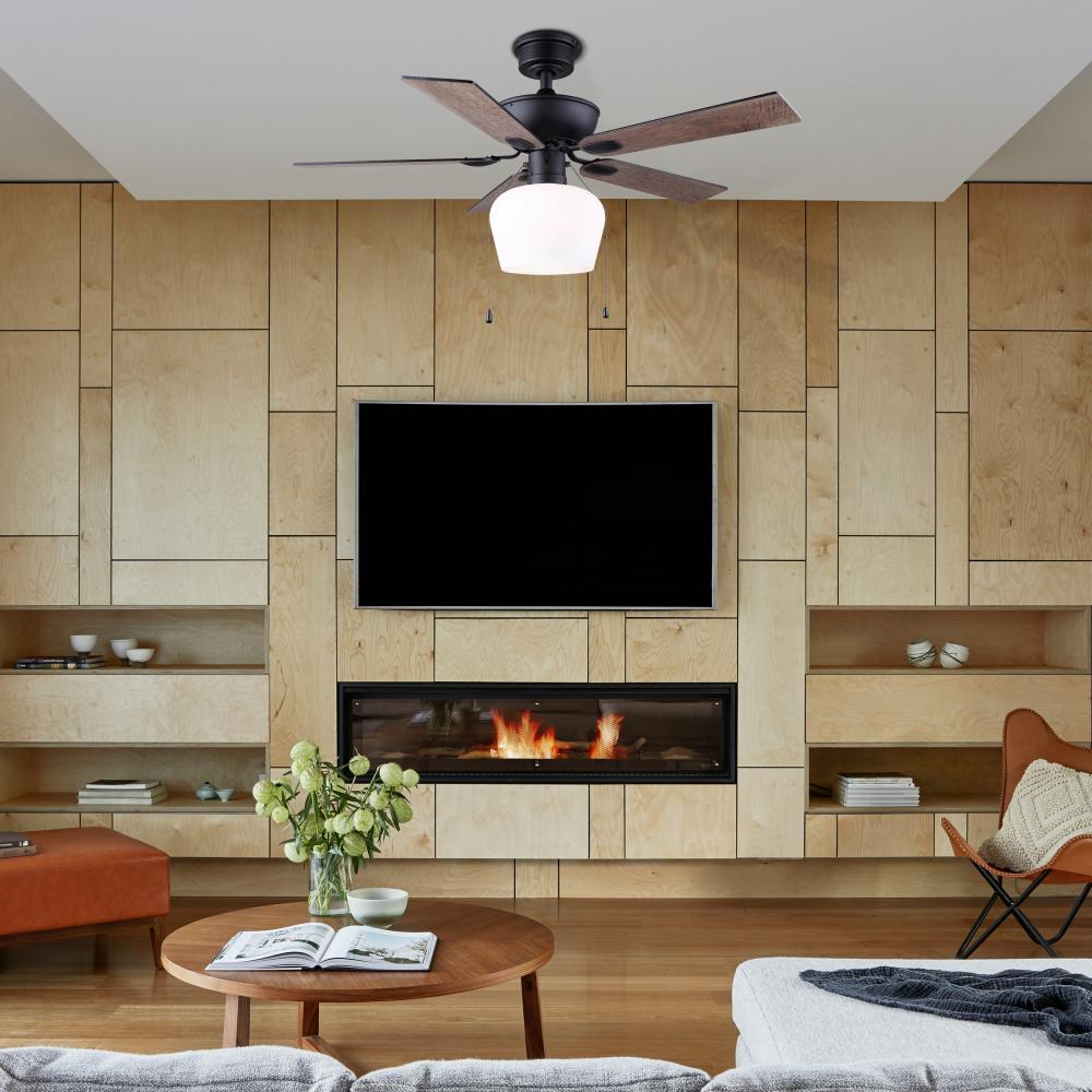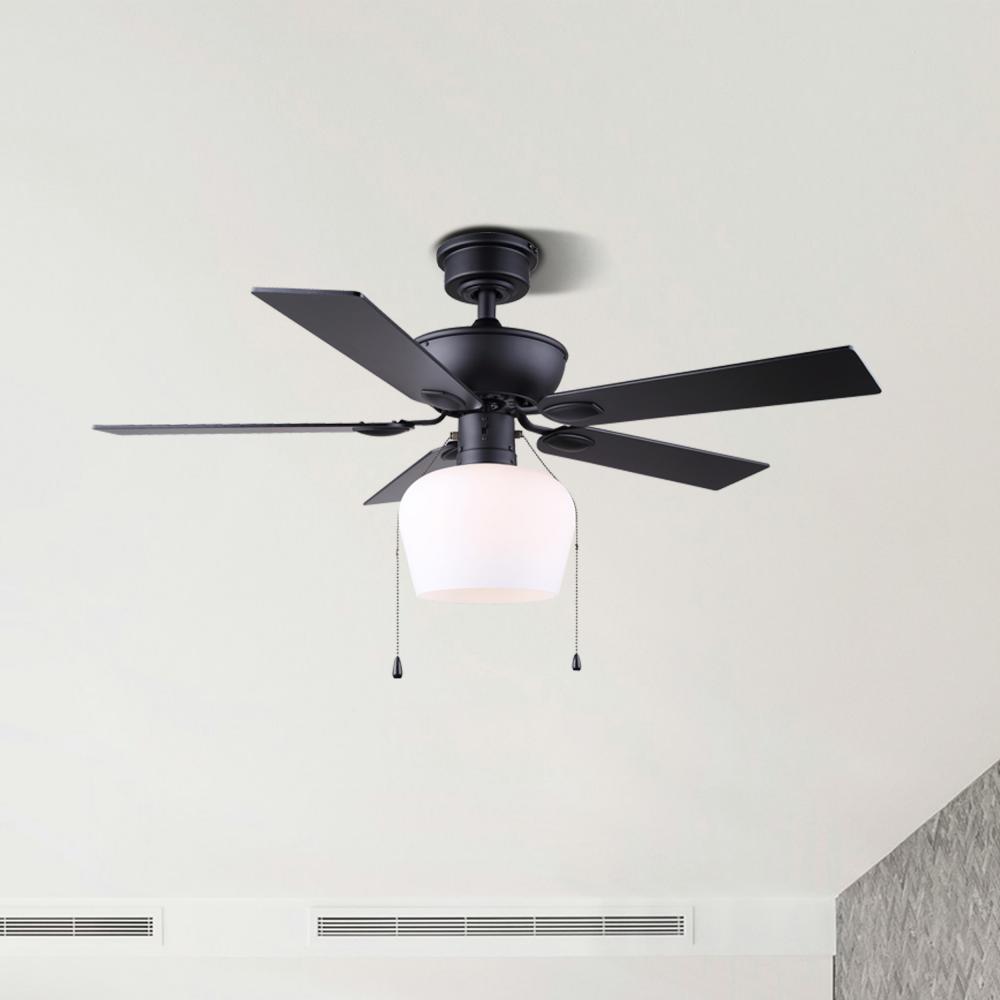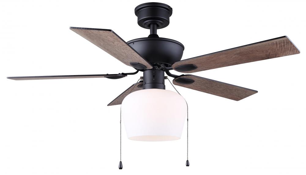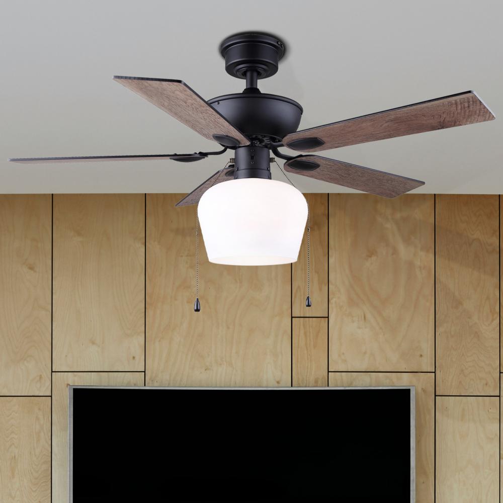 Convenient Operation: Equipped with a flat opal glass light kit and pull chains for easy operation, this fan combines functionality with style