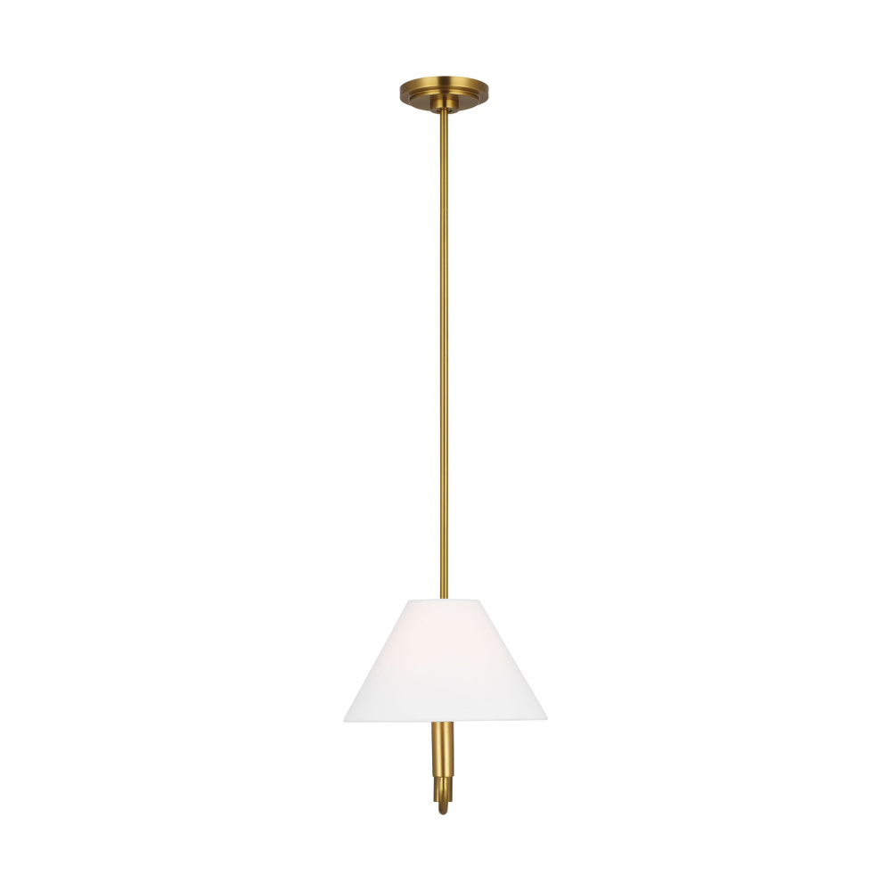 Crafted with Steel in a Burnished Brass finish with white linen shades