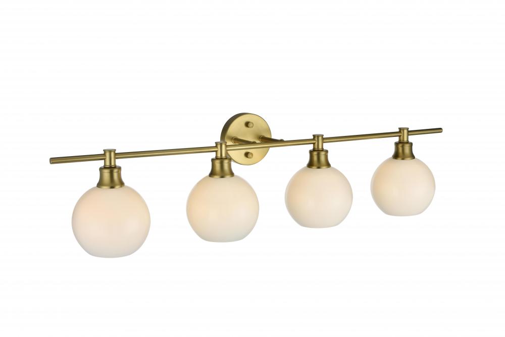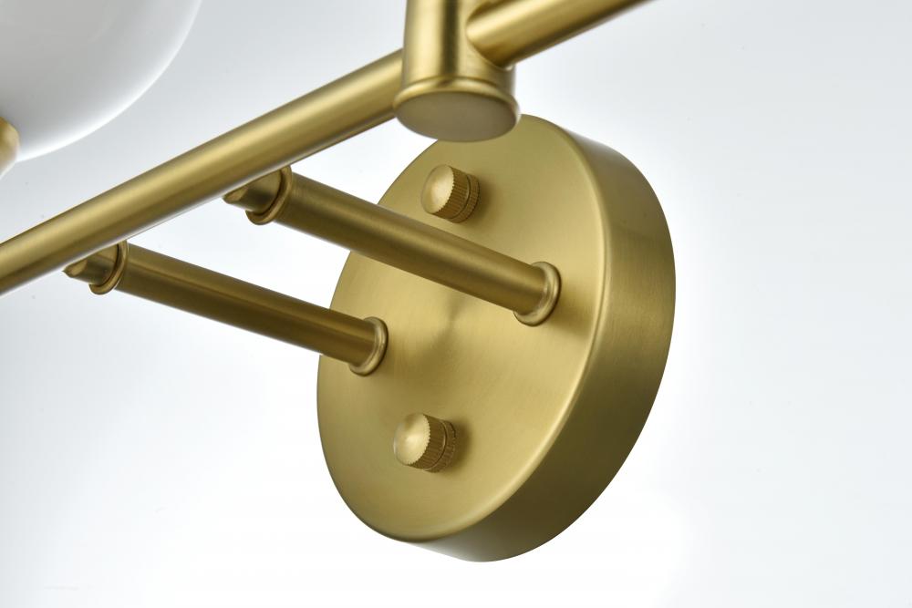 Features frosted white glass shades in a classic globe shape for a softer, diffused light effect.