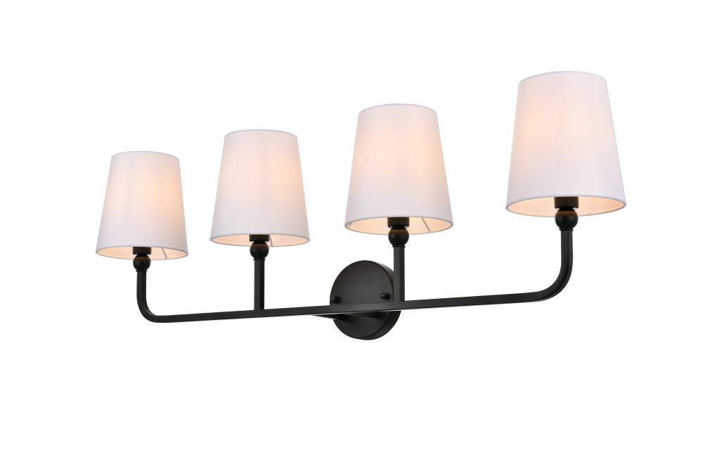 A modern twist on a traditional design, this vanity light is perfect for sprucing up your bathroom. Rated for use in damp locations, this iron fixture features a round backplate, curved arms, and fabric shade accents. Completely versatile, you can place this wall light as an uplight or downlight. Rated for use in damp locations, this will work perfectly over a vanity in your bathroom.