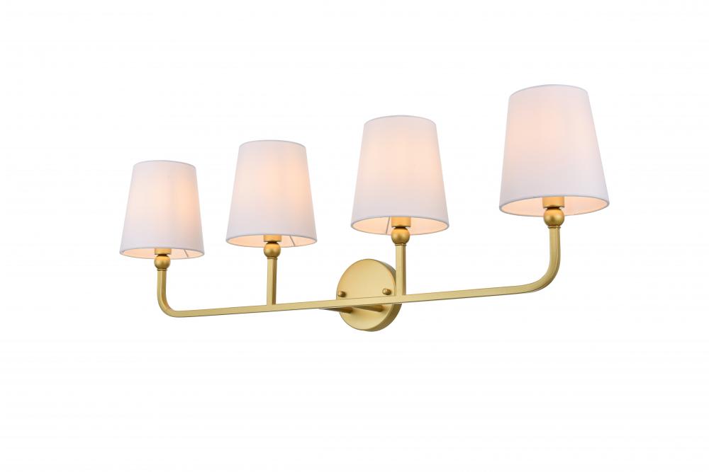 A modern twist on a traditional design, this vanity light is perfect for sprucing up your bathroom. Rated for use in damp locations, this iron fixture features a round backplate, curved arms, and fabric shade accents. Completely versatile, you can place this wall light as an uplight or downlight. Rated for use in damp locations, this will work perfectly over a vanity in your bathroom.
