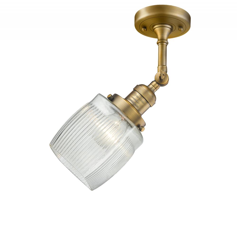 Colton - 1 Light - 6 inch - Brushed Brass - Clear Halophane Shade - Adjustable Semi-Flush Mount