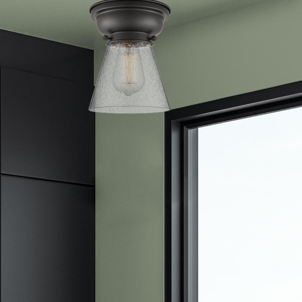 Cone - 1 Light - 6 inch - Matte Black - Seedy Shade - Flush Mount