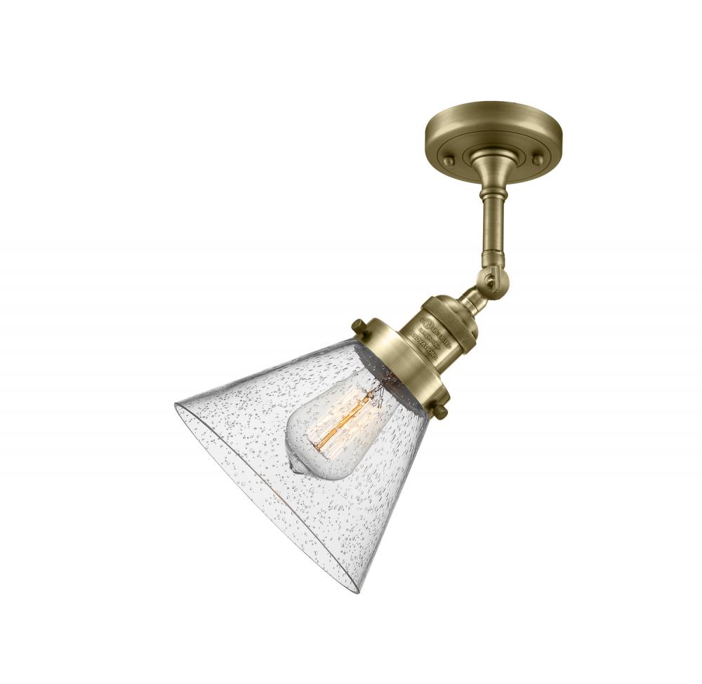 Cone - 1 Light - 8 inch - Antique Brass - Seedy Shade - Adjustable Semi-Flush Mount