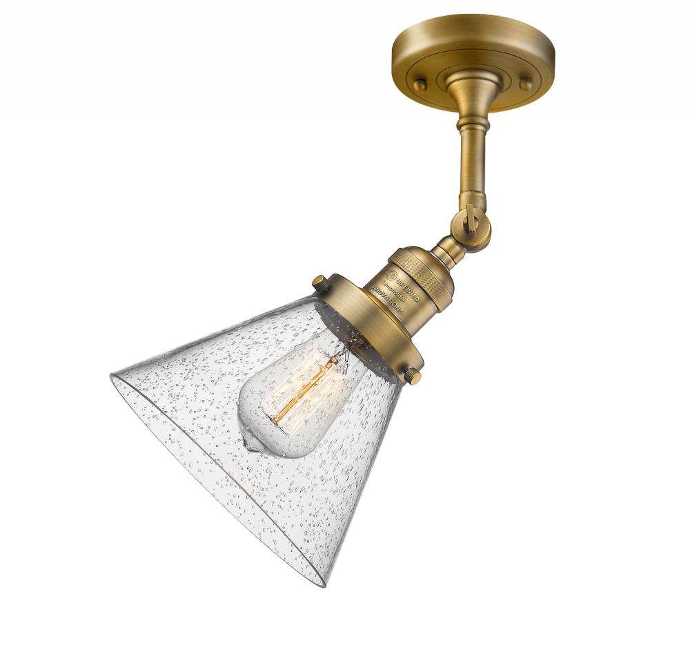 Cone - 1 Light - 8 inch - Brushed Brass - Seedy Shade - Adjustable Semi-Flush Mount