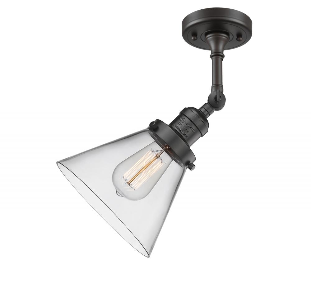 Cone - 1 Light - 8 inch - Oil Rubbed Bronze - Clear Shade - Adjustable Semi-Flush Mount