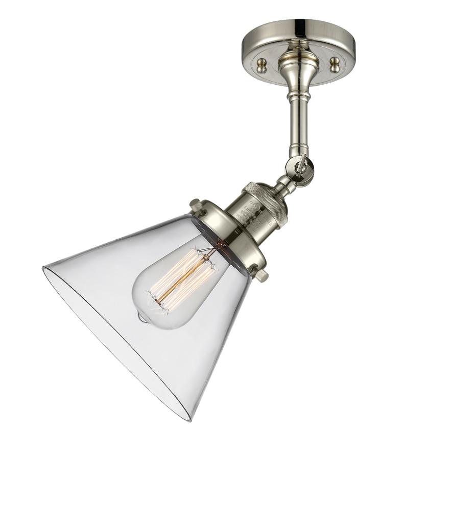 Cone - 1 Light - 8 inch - Polished Nickel - Clear Shade - Adjustable Semi-Flush Mount