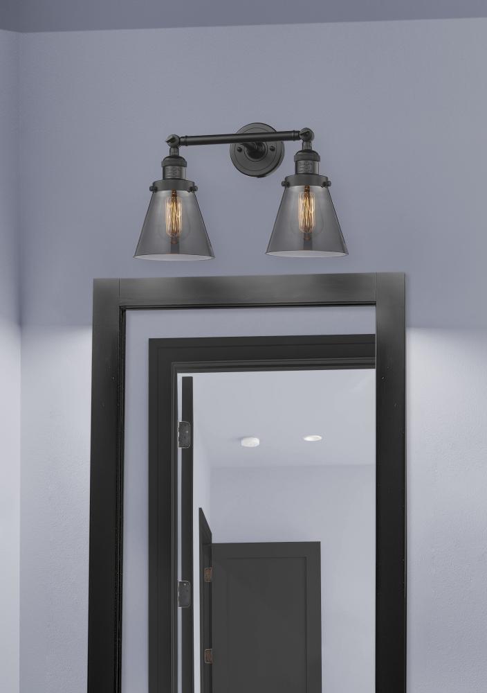 Cone - 2 Light - 6 inch - Matte Black - Light Smoke Shade - Adjustable Bath Vanity Light