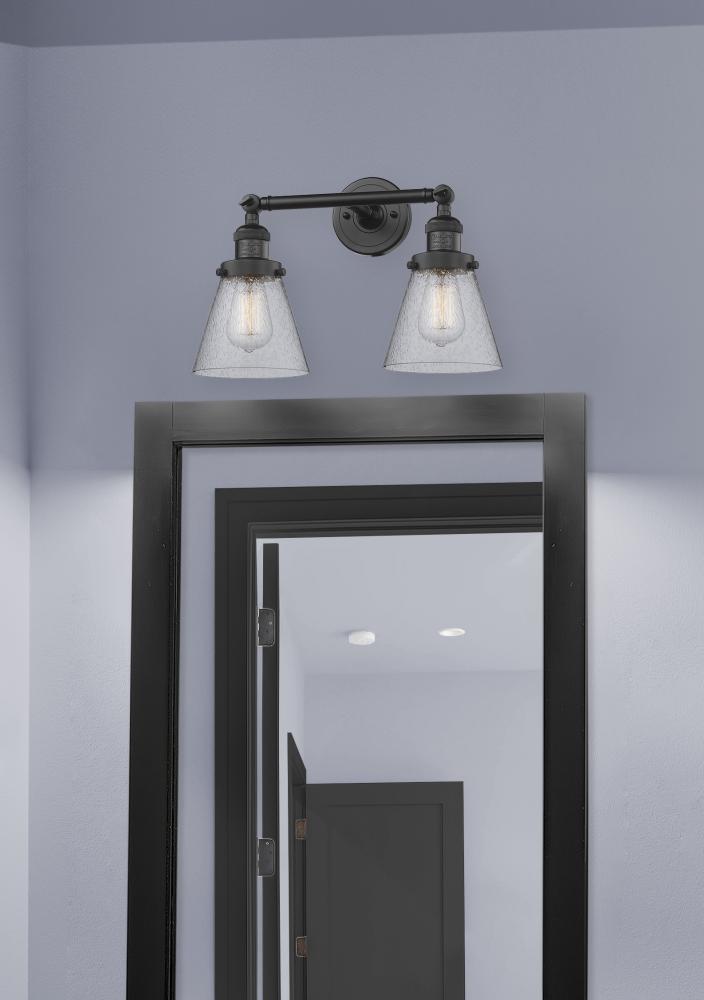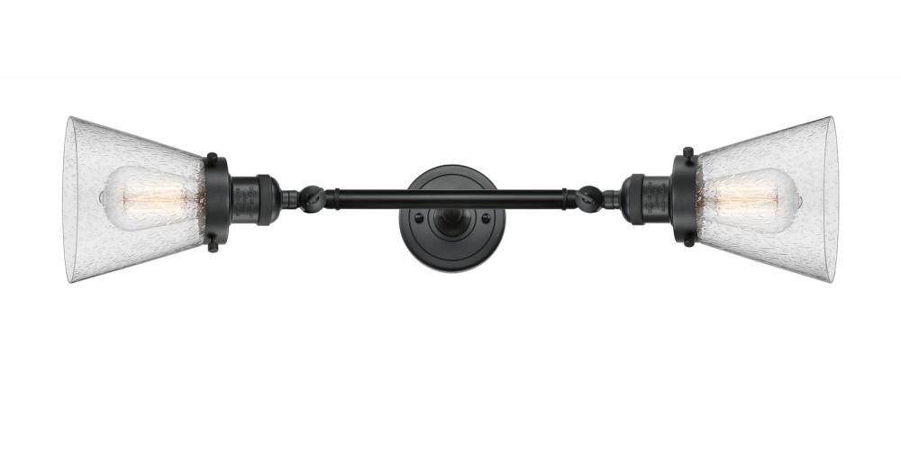 Cone - 2 Light - 6 inch - Matte Black - Seedy Shade - Adjustable Bath Vanity Light