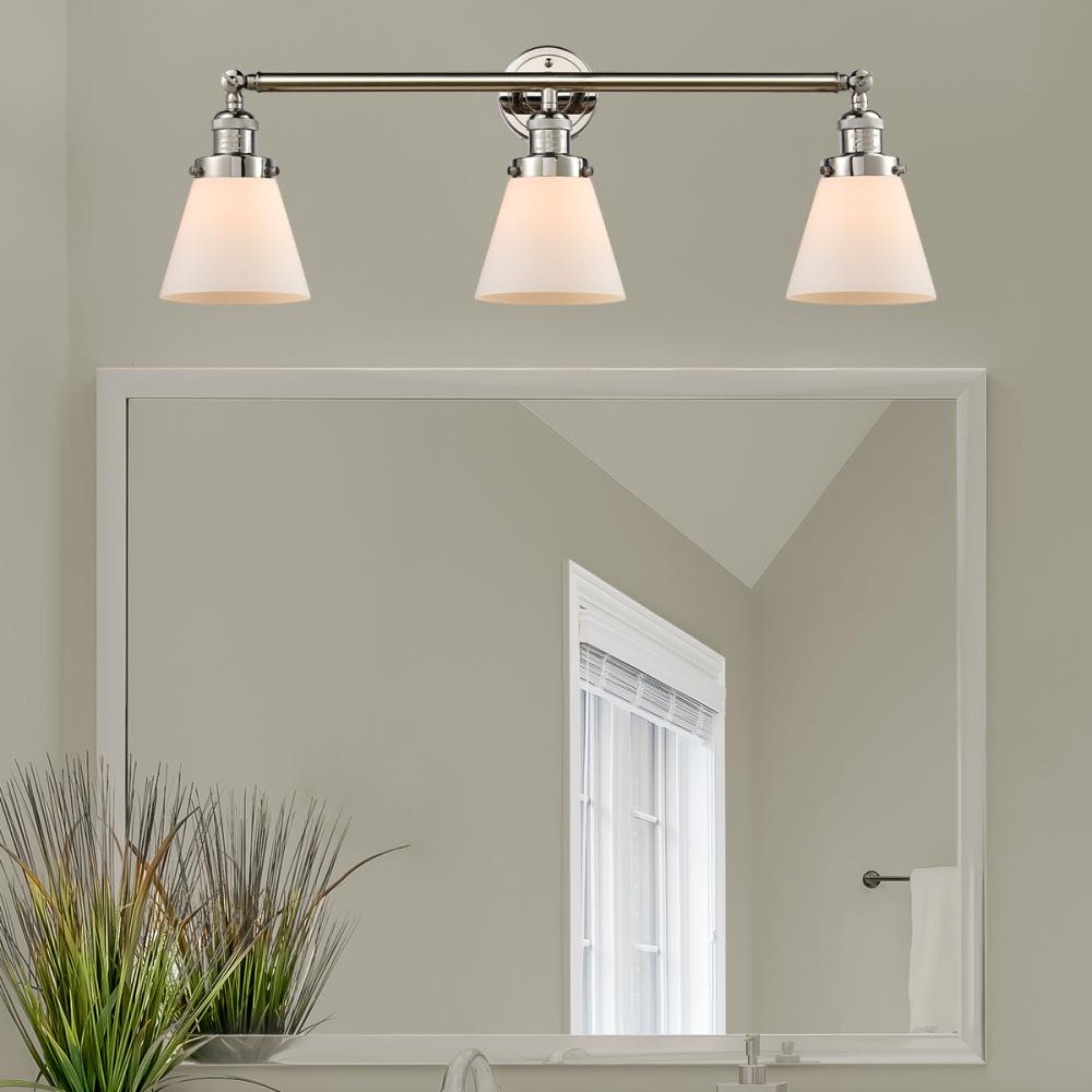 Cone - 3 Light - 30 inch - Polished Nickel - Matte White Shade - Bath Vanity Light